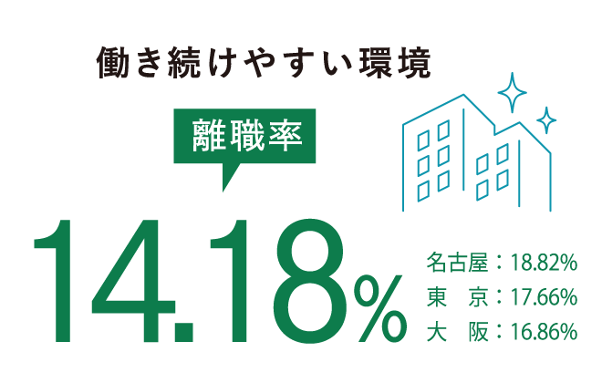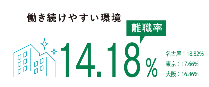 離職率は14.18%と全国平均以下、